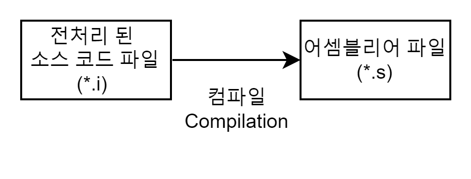 컴파일(Compilation) 과정은 컴파일러(Compiler)를 통해 전처리된 소스 코드 파일(*.i)을 어셈블리어 파일(*.s)로 변환하는 과정이다.