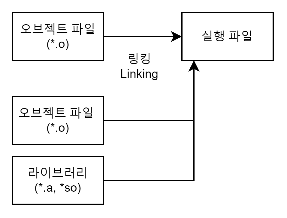 링킹(Linking) 과정은 링커(Linker)를 통해 오브젝트 파일(*.o)들을 묶어 실행 파일로 만드는 과정이다.