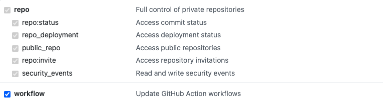 ! [remote rejected] master -> master (refusing to allow a Personal Access Token to create or update workflow `.github/workflows/cd.yml` without `workflow` scope)