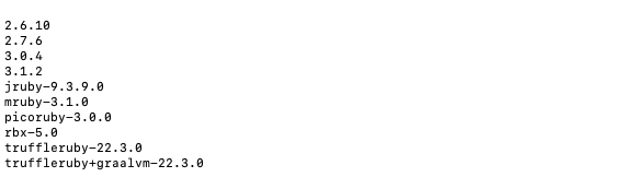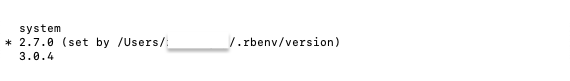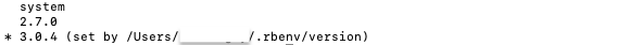 3.0.4 를 설치 후, 설치된 Ruby 버전 리스트를 확인해줬다.