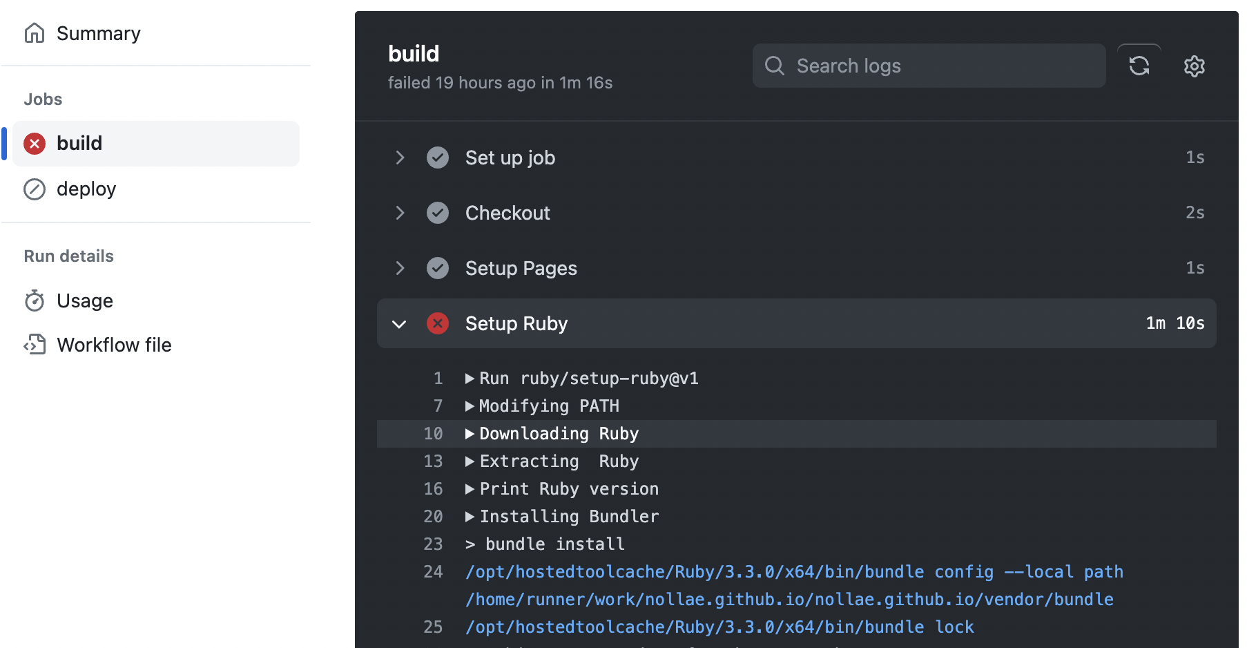 Github Build 시, Setup Ruby 에러 발생하는 경우