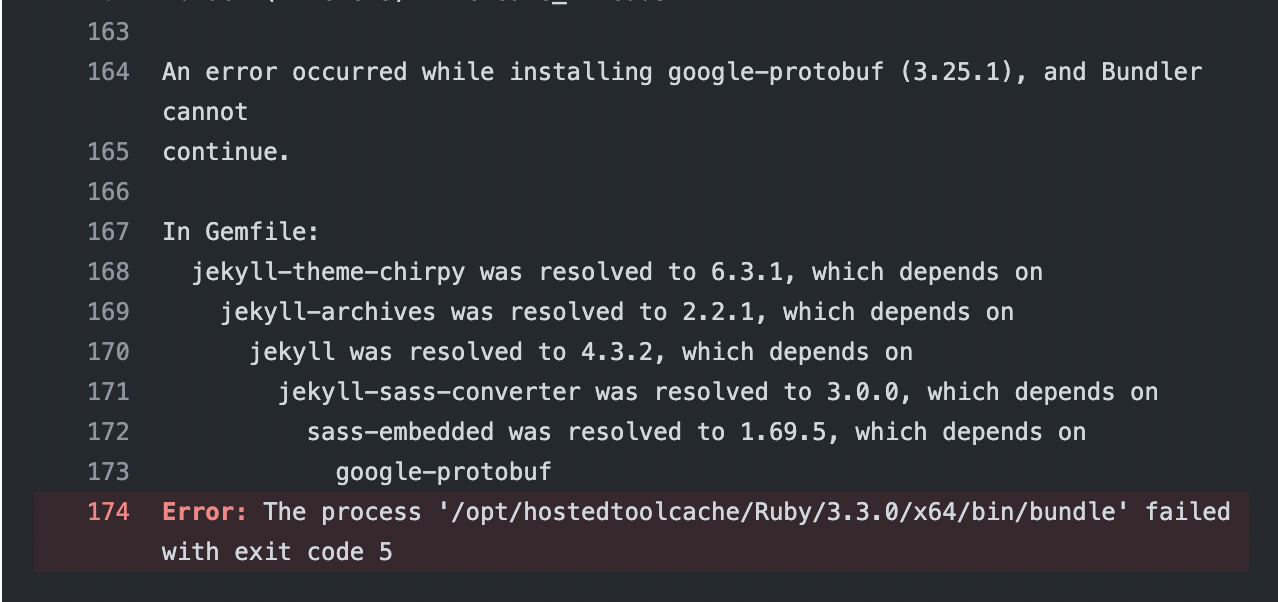Error: The process '/opt/hostedtoolcache/Ruby/3.3.0/x64/bin/bundle' failed with exit code 5